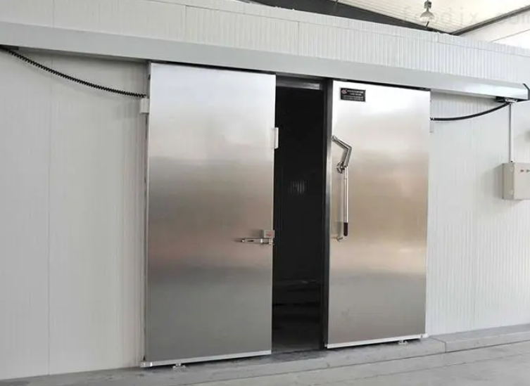 2、冷庫門:冷庫共計4扇雙面彩鋼冷庫門。庫門均含門框加熱絲,防爆等級ExdIBT4。門的尺寸不同,所用冷庫門材料相同,中型單開冷庫平移門1扇,雙面彩鋼板0.5mm100mm厚,內外雙鋁框,